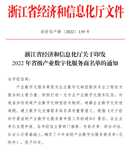 產(chǎn)業(yè)數字化服務(wù)商由浙江省經(jīng)濟和信息化廳組織遴選,是為企業(yè)數字化轉型提供專(zhuān)業(yè)工程技術(shù)服務(wù)的主要力量。積極打造一支專(zhuān)業(yè)產(chǎn)業(yè)數字化服務(wù)隊伍,對浙江省加快突破產(chǎn)業(yè)數字化轉型技術(shù)瓶頸,破解企業(yè)數字化改造難題,建立數字化支撐服務(wù)體系具有重要意義。此次登榜入選,將為公司快速發(fā)展創(chuàng )造更多的有利條件。